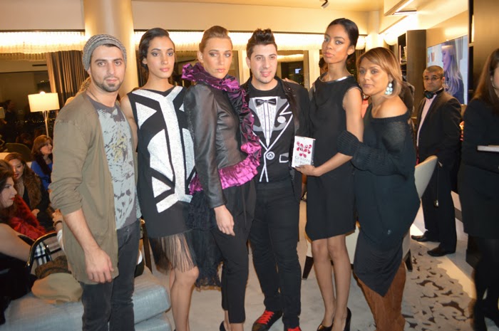 After hanging out with Eleonora and me, Giovanni went to pose with the models wearing his designs. Hair stylist Eran Edri and his lovely wife makeup artist Natalie Edri are pictured on each side. The husband and wife glam team from Francky L'Official Salon did the hair and makeup for all of the models at the event.