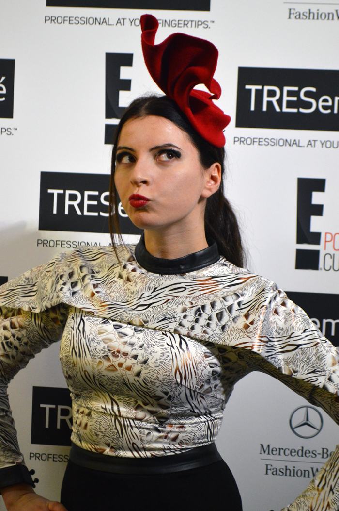 I wore a Kevin V. Thai dress, CHUCHU NY fascinator and BCBG heels. This was a super last minute outfit composition, and by last minute I mean 30 minutes before my shows at fashion week! My friends at Kevin V. Thai brought me this incredible piece and it just happened to go perfectly with the red CHUCHU NY fascinator I was planning to wear that evening. I'm almost always last minute but this was definitely pushing it. Luckily the look came together even better than the ones I had actually planned!
